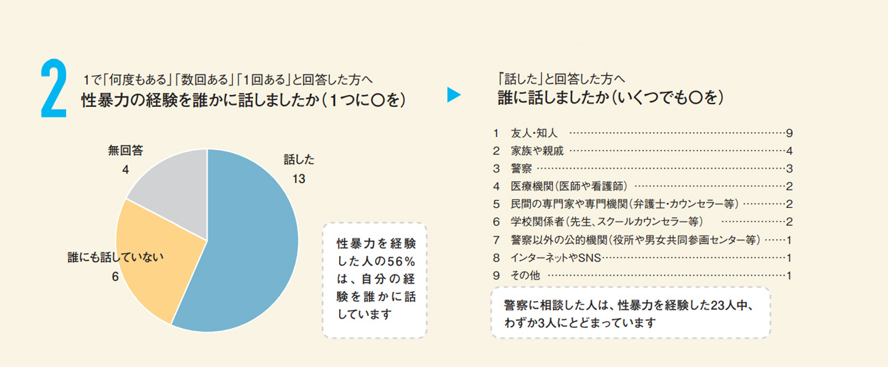 た 。今回の調査からは、「知的障害のない高機能群の発達障害者においても性暴力被害が高い可能性がある」ということが、新たな知見として言えるのではないかと考えます。
